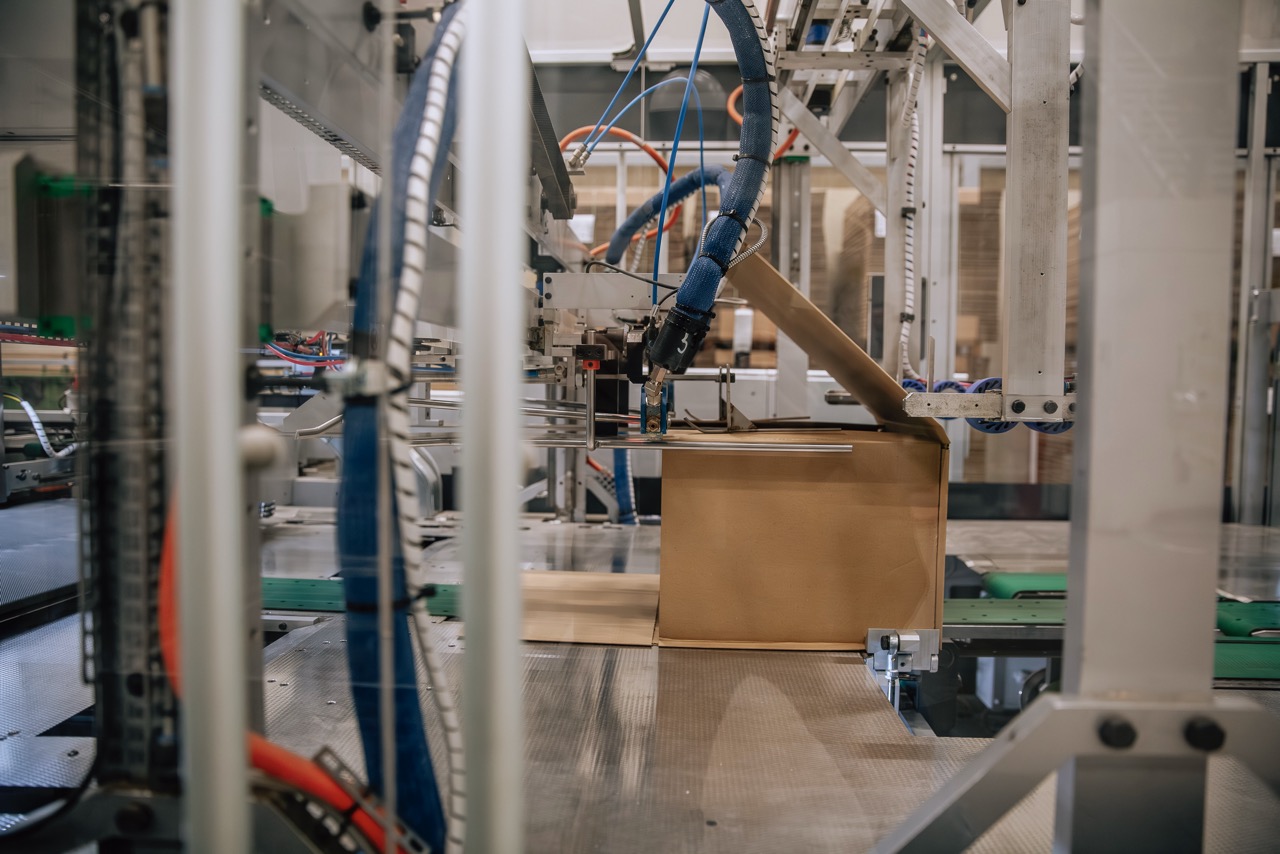 > Integratie van een inpakrobot voor de automatische verpakking en verzending van duizenden paketten per dag.